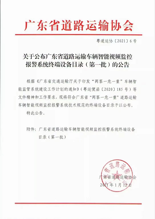 廣東省道路運(yùn)輸車輛智能視頻監(jiān)控報(bào)警系統(tǒng)終端設(shè)備目錄(第三批,第二階段)